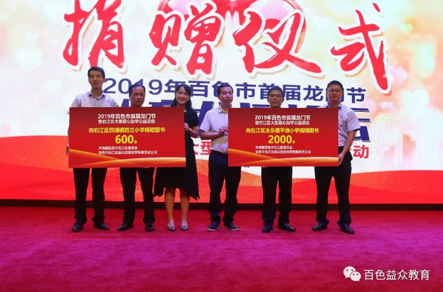 論壇還進(jìn)行了圖書捐贈(zèng)儀式,捐贈(zèng)的圖書來自于龍門節(jié)另一個(gè)公益活動(dòng)—龍門書友會(huì)活動(dòng),所有捐贈(zèng)圖書均來自于同學(xué)們置換的閑置書籍。置換的書籍統(tǒng)一由共青團(tuán)百色市右江區(qū)委員會(huì)捐贈(zèng)給右江區(qū)偏遠(yuǎn)的貧困小學(xué),捐贈(zèng)書本數(shù)量以在校學(xué)生人數(shù)為依據(jù)。本次龍門書友會(huì)共置換到圖書約9000本,當(dāng)天作為獲贈(zèng)方代表,右江區(qū)永樂鎮(zhèn)平塘小學(xué)和右江區(qū)四塘鎮(zhèn)百蘭小學(xué)校長出席論壇并接受圖書捐贈(zèng)。這不僅是一次知識(shí)的傳遞,更是一次愛心的流動(dòng)。