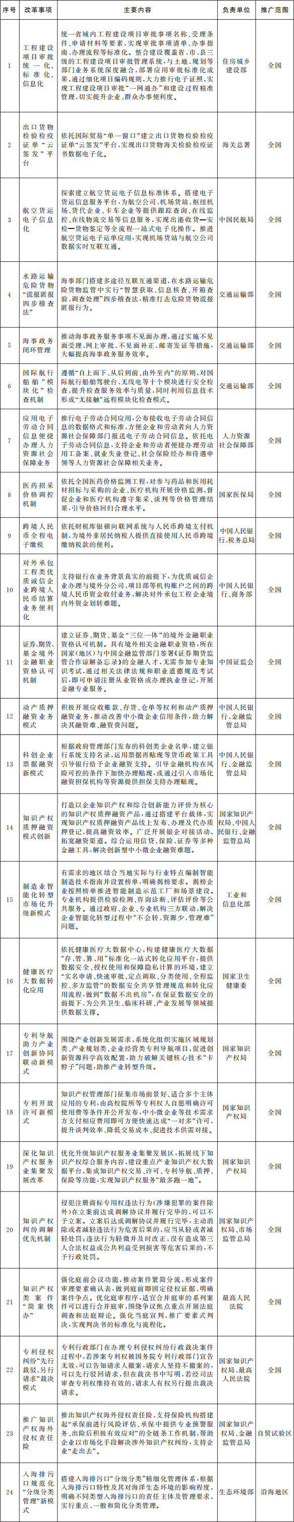 (一)在全國范圍內(nèi)復(fù)制推廣的改革事項(xiàng)。