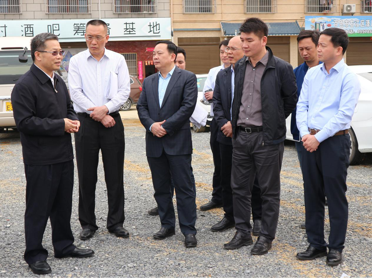 ??? 自治區(qū)政協(xié)副主席、百色市委書記、百色市人大常委會主任彭曉春一行到公司負責的棚戶區(qū)改造項目檢查工作進展情況,百色市委秘書長藍樹東、右江區(qū)委書記黃永才、公司經營管理指導工作小組組長李勇春等領導陪同。?(通訊員:金彥彤)