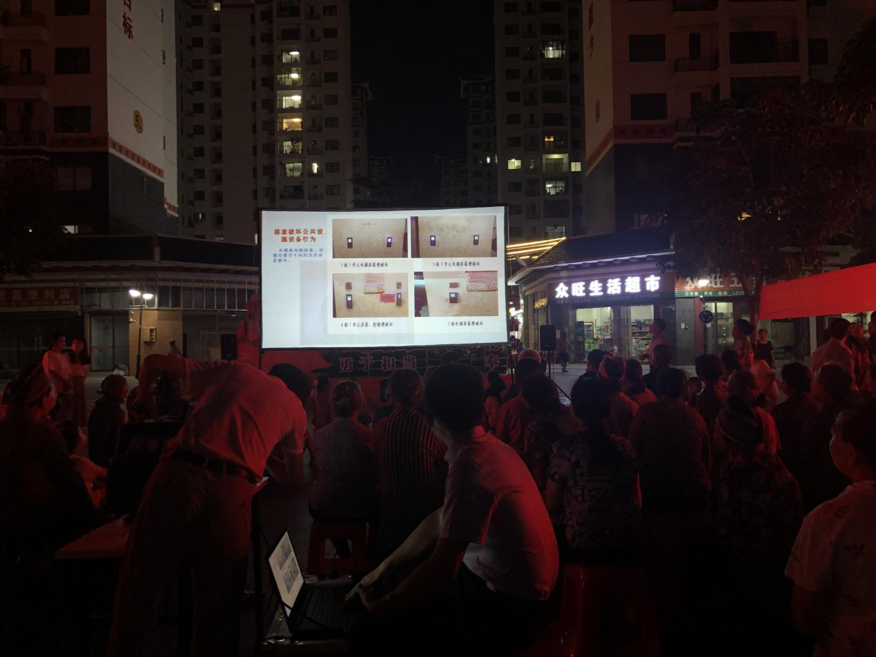 ????????活動(dòng)開展期間,益眾物業(yè)公司工作人員用壯話為業(yè)主講解小區(qū)存在的不文明現(xiàn)象,講解相關(guān)文明知識(shí),指出生活上因違規(guī)操作導(dǎo)致的安全問題等。活動(dòng)通過播放文明行為宣傳片,公示生活中存在的不文明行為等方式全面深入向業(yè)主普及文明知識(shí)。