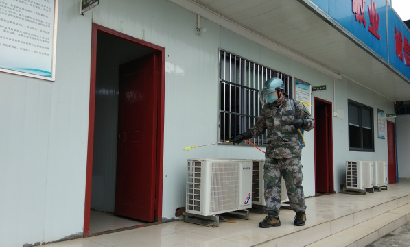 潤益商貿(mào)公司工作人員正在消毒辦公場所?