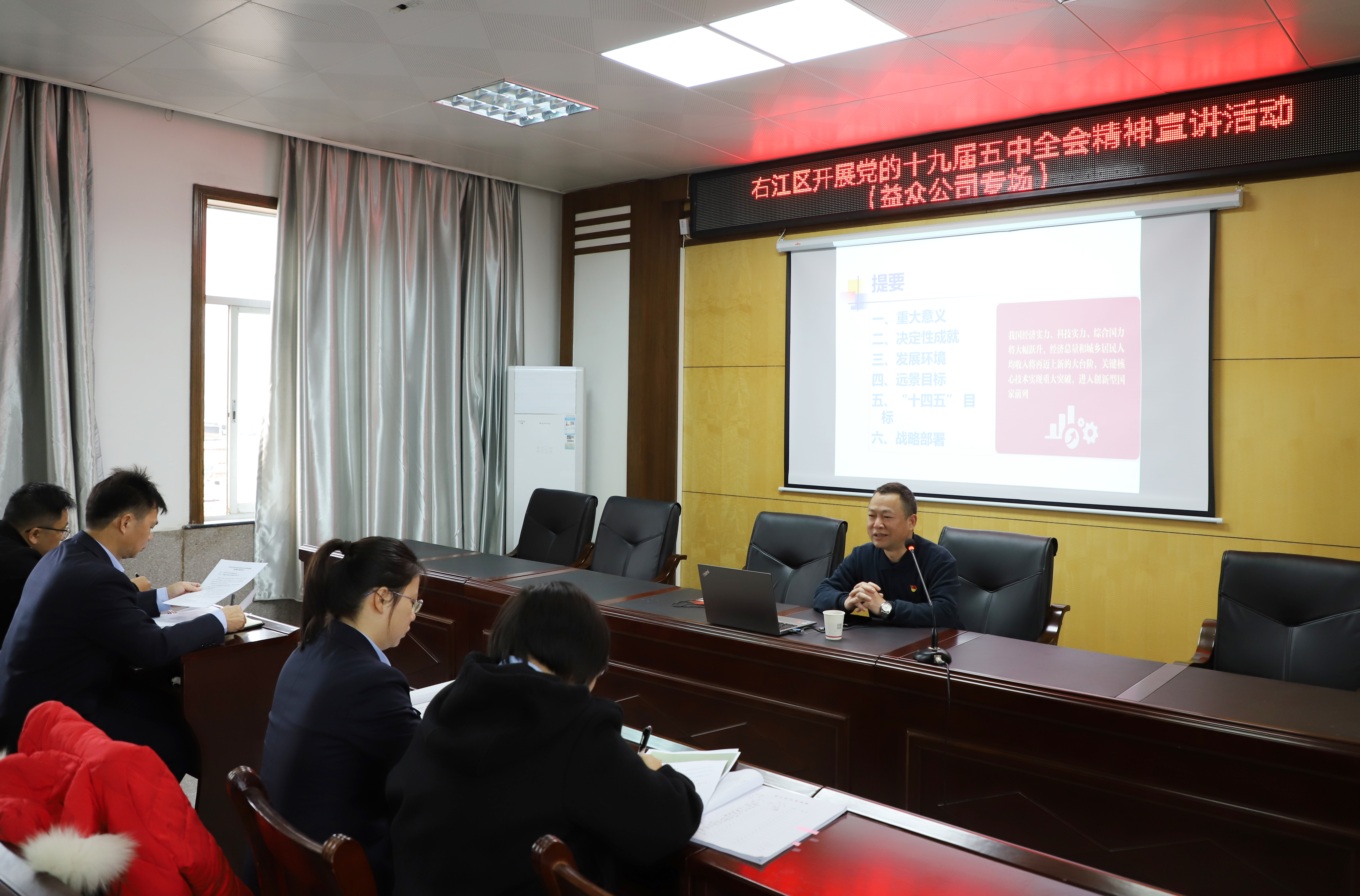????????與會(huì)同志紛紛表示,宣講報(bào)告全面系統(tǒng)、深入淺出、鼓舞人心、催人奮進(jìn),對深刻領(lǐng)會(huì)五中全會(huì)提出的新發(fā)展階段、新發(fā)展格局、新目標(biāo)任務(wù)、高質(zhì)量發(fā)展等重大問題,推動(dòng)五中全會(huì)精神在企業(yè)落地執(zhí)行具有重要意義,聽了深受教育和啟發(fā)。