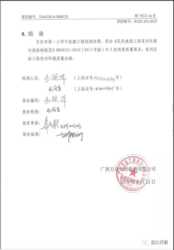 2??018927日,廣西萬眾工程檢測有限公司提交了檢測報告,新托管樓室內(nèi)、室外檢測點甲醛、氨、苯、TVOC、氡濃度指標均符合《民用建筑工程室內(nèi)環(huán)境污染控制規(guī)范》GB50325-20102013年版)中I類濃度限量要求,室內(nèi)環(huán)境質(zhì)量合格。