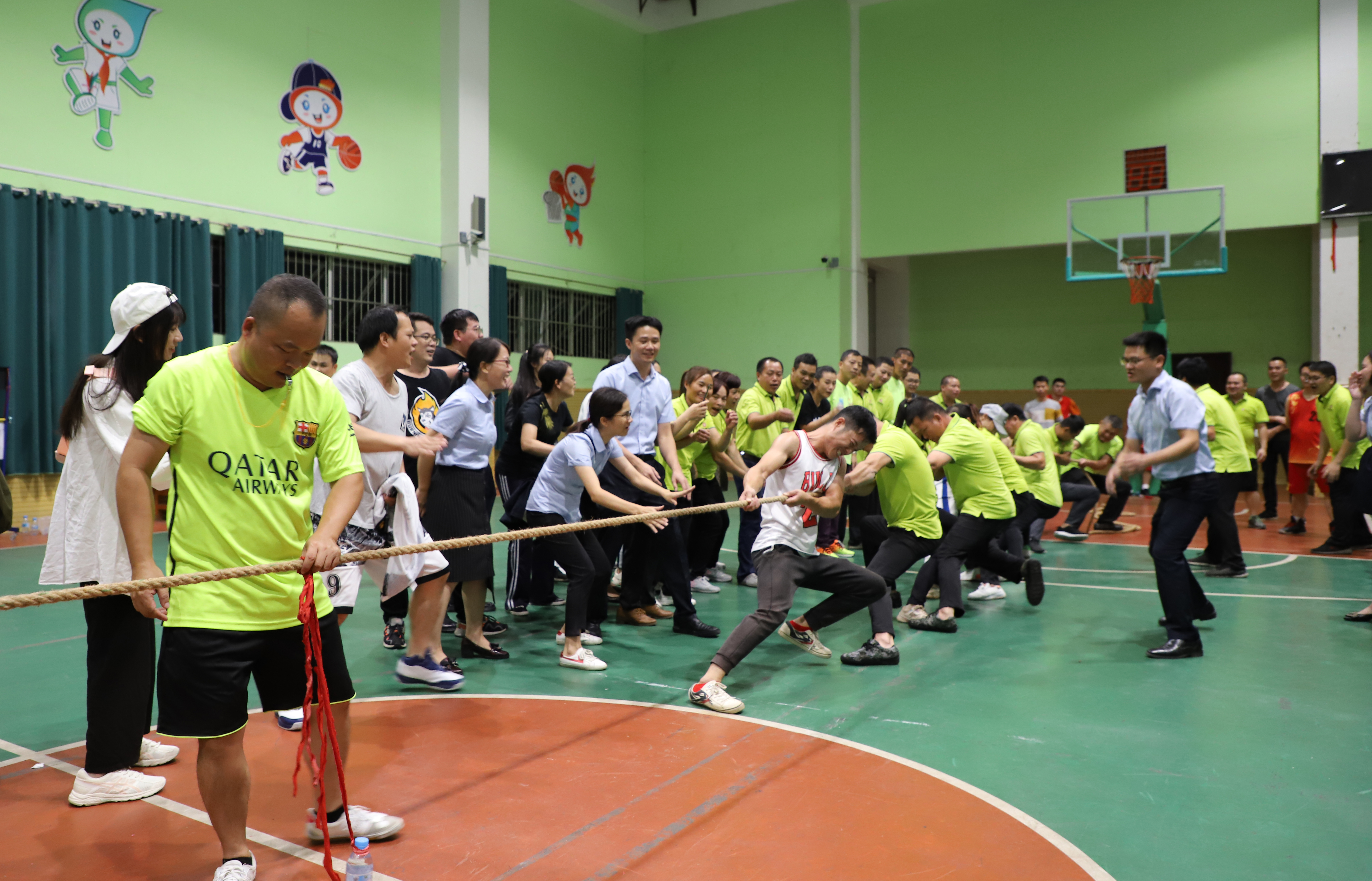 ????????為進一步豐富職工文化生活,加強團隊合作意識,營造積極向上的企業(yè)氛圍。近日,益眾公司舉辦了“慶國慶·迎中秋”職工拔河比賽。公司各部門、子公司共十支隊伍參賽。