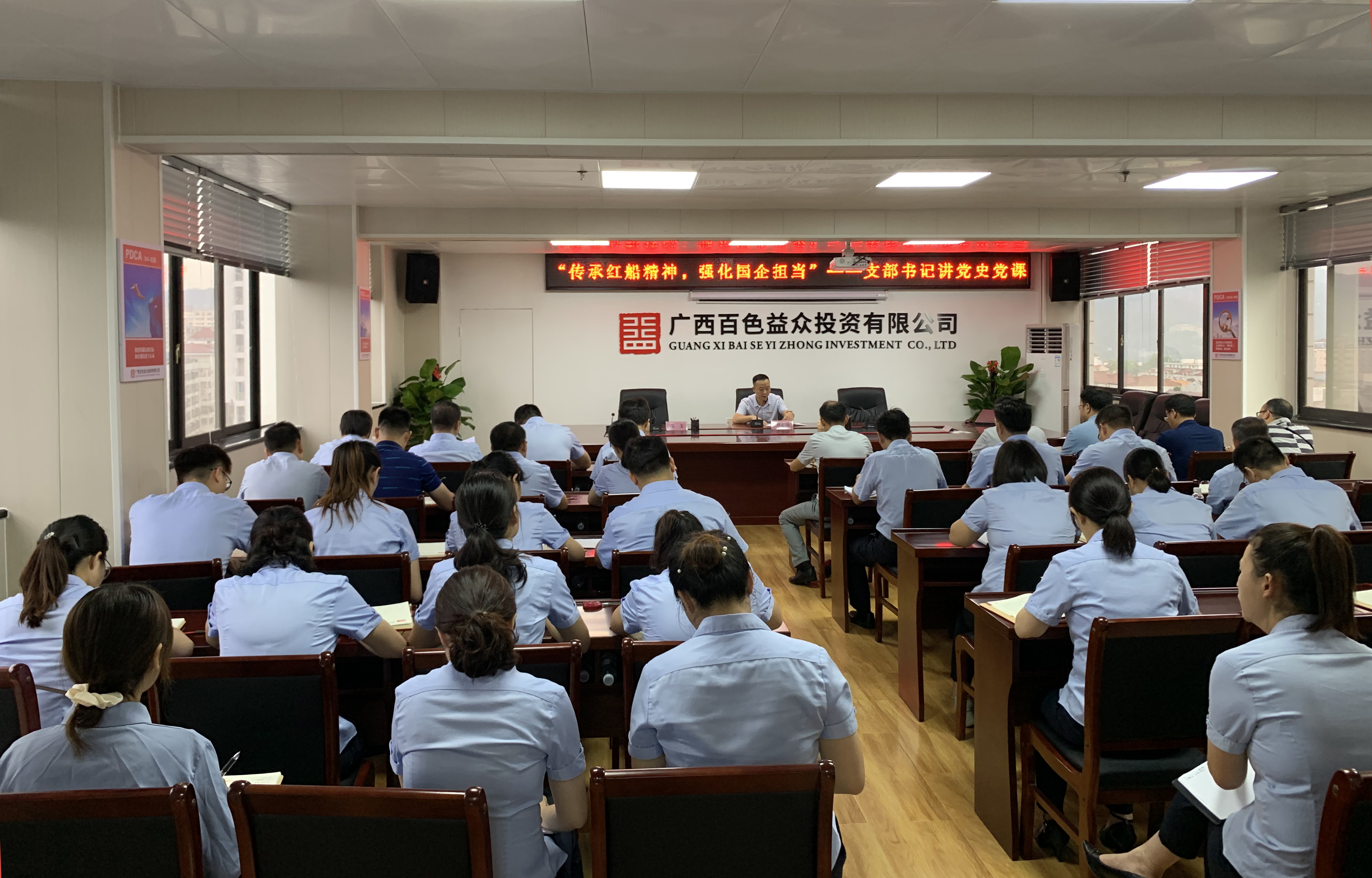 ????????為貫徹落實(shí)百色市、右江區(qū)關(guān)于開展“書記講黨史”活動的有關(guān)工作部署,進(jìn)一步推動企業(yè)黨史學(xué)習(xí)教育走深走實(shí),6月11日上午,右江區(qū)國資中心黨支部書記、主任覃春明到益眾公司開展“書記講黨史”活動,益眾公司領(lǐng)導(dǎo)干部、全體黨員、入黨積極分子約60余人參加了活動。