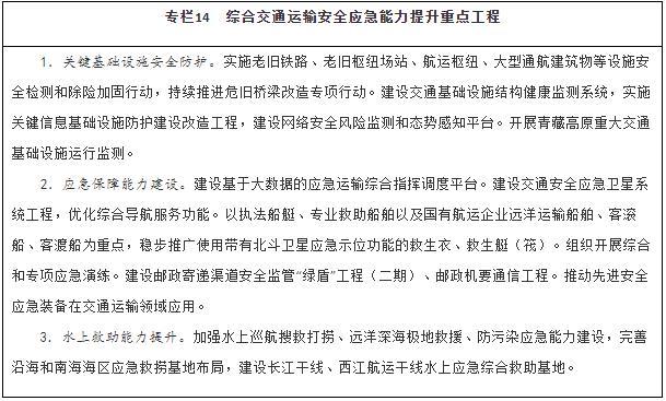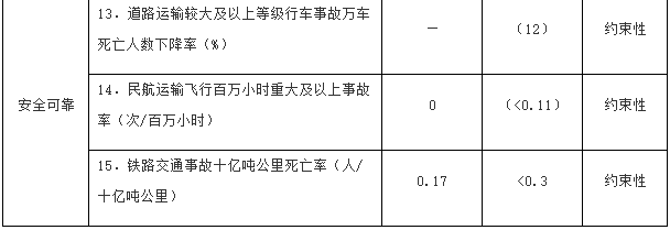 安全保障更加可靠。交通設施耐久可靠、運行安全可控、防范措施到位,安全設施完好率持續(xù)提高。跨部門、跨領(lǐng)域的安全風險防控體系和應急救援體系進一步健全,重特大事故發(fā)生率進一步降低。主要通道運輸安全和糧食、能源、礦石等物資運輸安全更有保障,國際物流供應鏈安全保障能力持續(xù)提升。