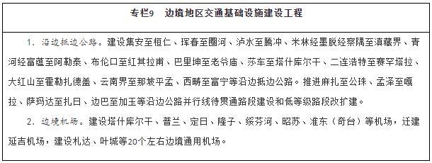 服務沿邊城鎮(zhèn)體系建設,以公路、機場為重點,大力改善邊境地區(qū)交通出行條件,提升邊境城鎮(zhèn)人口集聚能力。統(tǒng)籌推進邊境地區(qū)國省干線公路、農(nóng)村公路等建設,全面完善國道干線主骨架,推進沿邊公路并行線建設和低等級公路提質(zhì)改造,加快抵邊公路建設,盡快形成層次清晰、結(jié)構(gòu)合理的沿邊公路網(wǎng)。穩(wěn)步推進邊境地區(qū)機場建設,構(gòu)建多層級航空網(wǎng),擴大航空運輸服務覆蓋面。補強同江、二連浩特、阿拉山口、霍爾果斯、瑞麗、磨憨等口岸后方鐵路通道能力。加強抵邊自然村郵政設施建設,實現(xiàn)郵政服務普遍覆蓋。