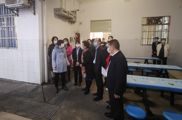 4月2日下午,市人大常委會副主任黃運(yùn)志到我公司下屬益眾托管公司逸夫校區(qū)就開學(xué)前校園疫情防控準(zhǔn)備工作進(jìn)行檢查,重點(diǎn)查看了校區(qū)食堂、就餐區(qū)、托管宿舍樓、防疫物資儲備室等地。